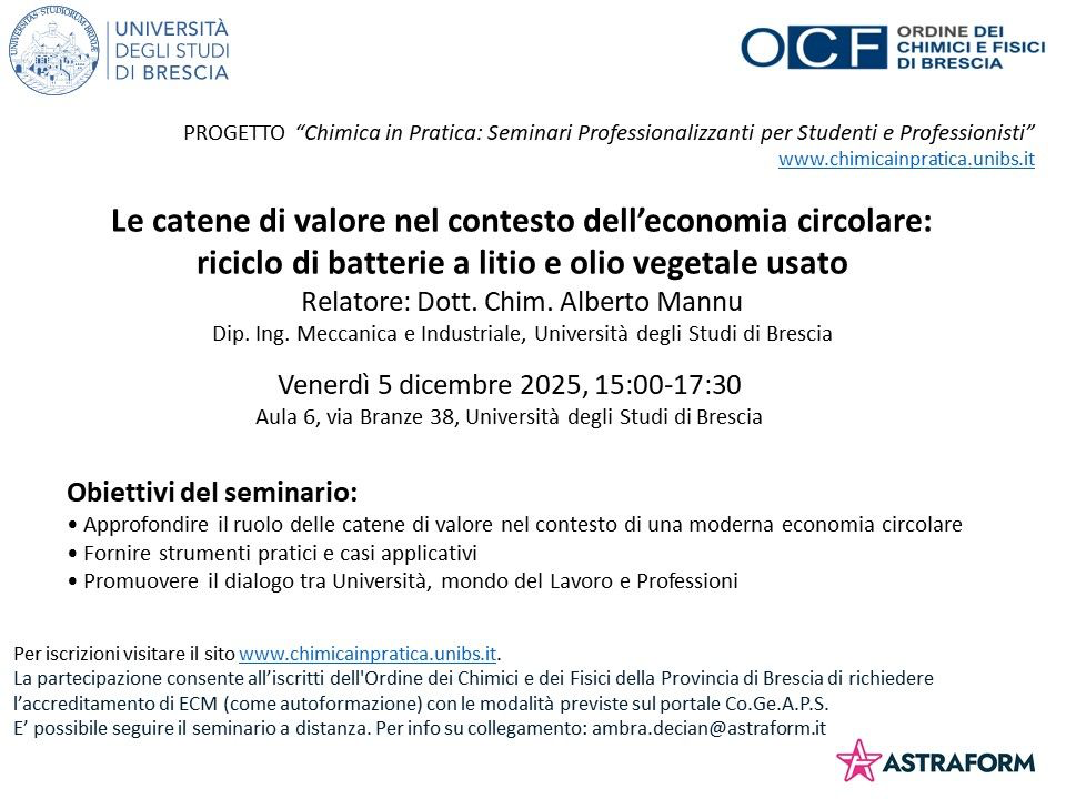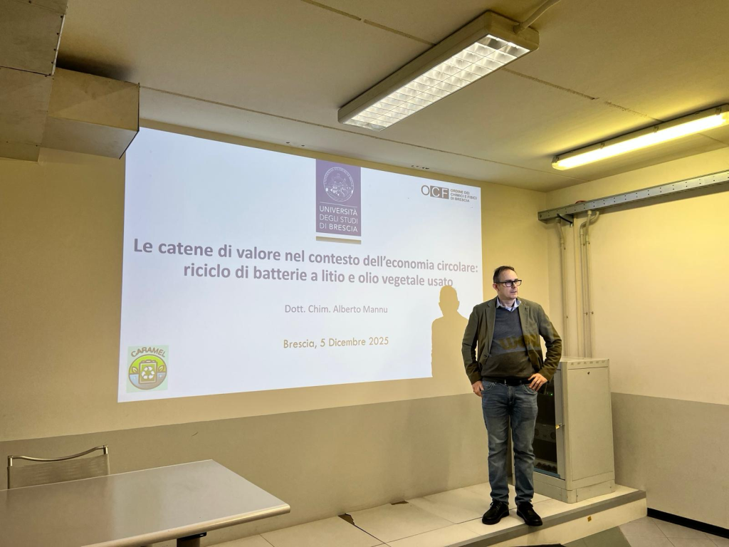 Alberto Mannu had a presentation on December 5, 2025, reporting some CARAMEL results, with the title: “Le catene di valore nel contesto dell’economia circolare” for young students and PhD. This allowed students to be involved in the circular economy principles and the innovation Caramel proposes.