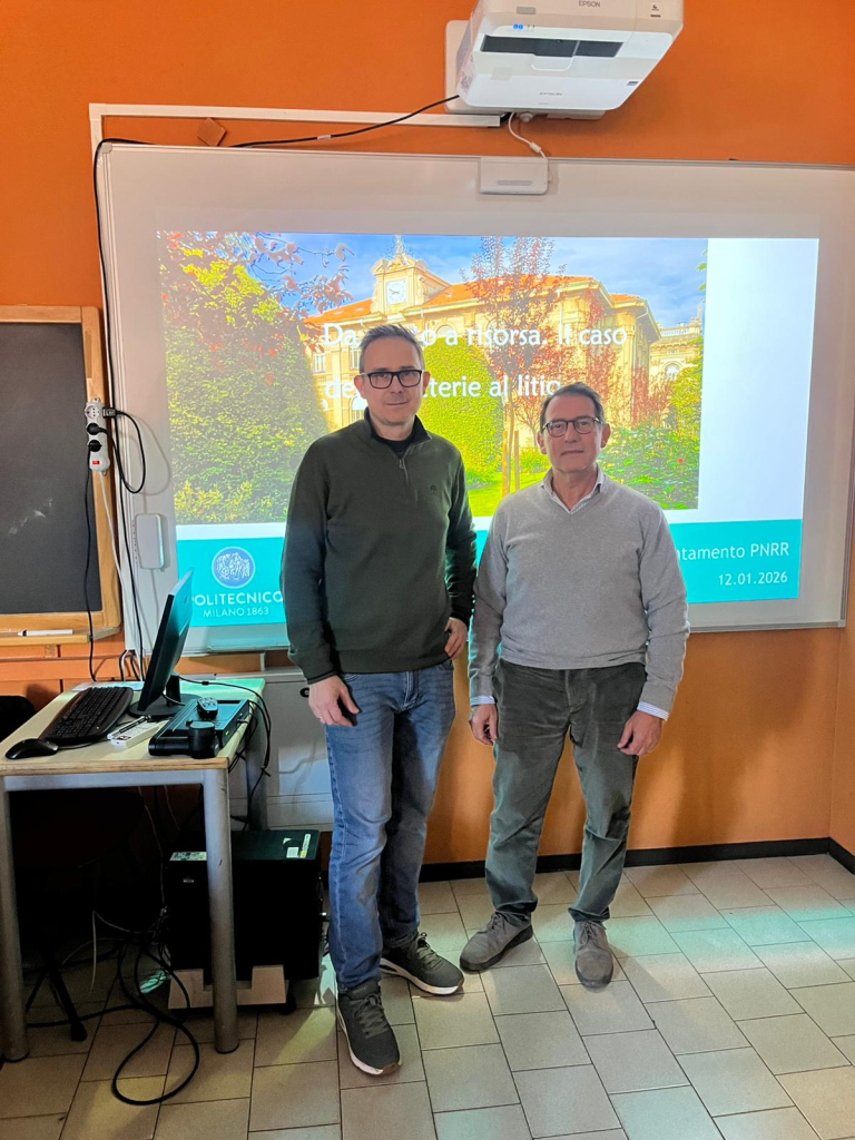 On January, 12, 2026, a 3-hour training module was delivered by Alberto Mannu at Primo Levi secondary school of Milan to introduce participants to the valorization and recycling of end-of-life lithium batteries, a topic of growing scientific, technological, and environmental relevance. The CARAMEL technology was introduced.